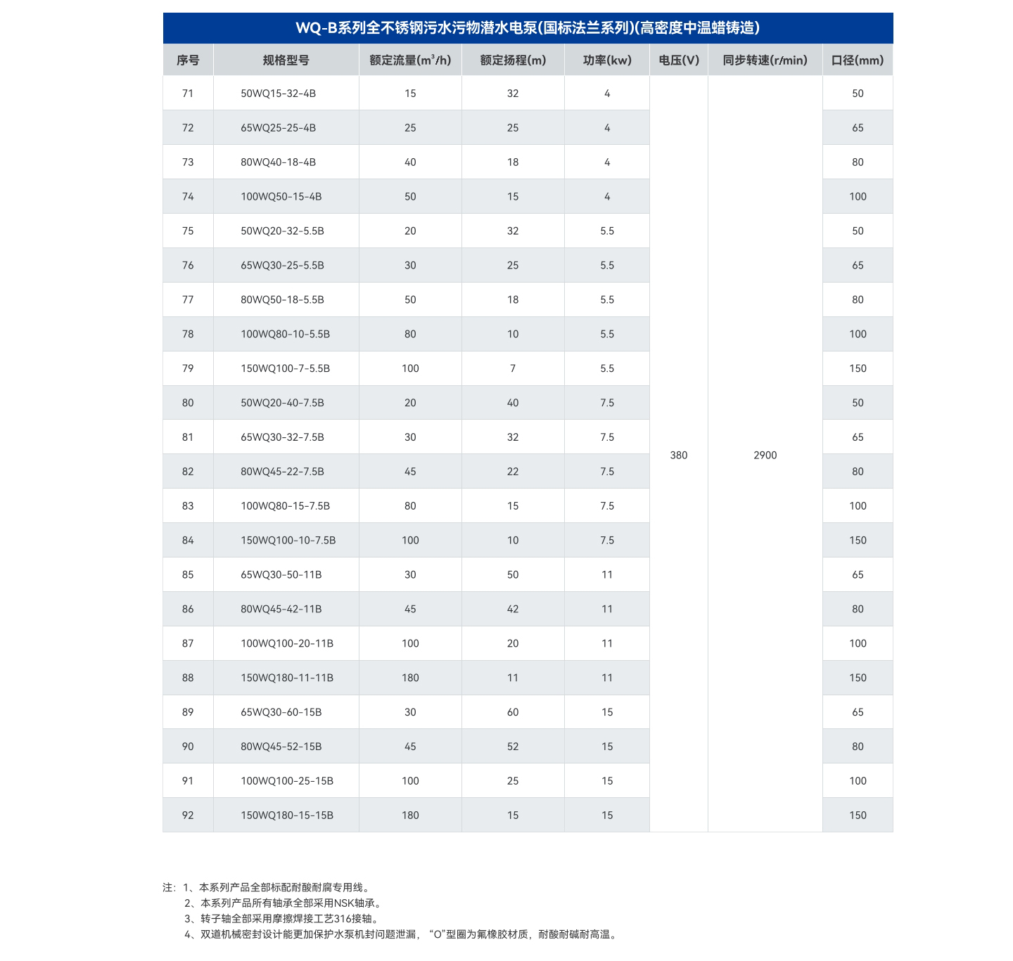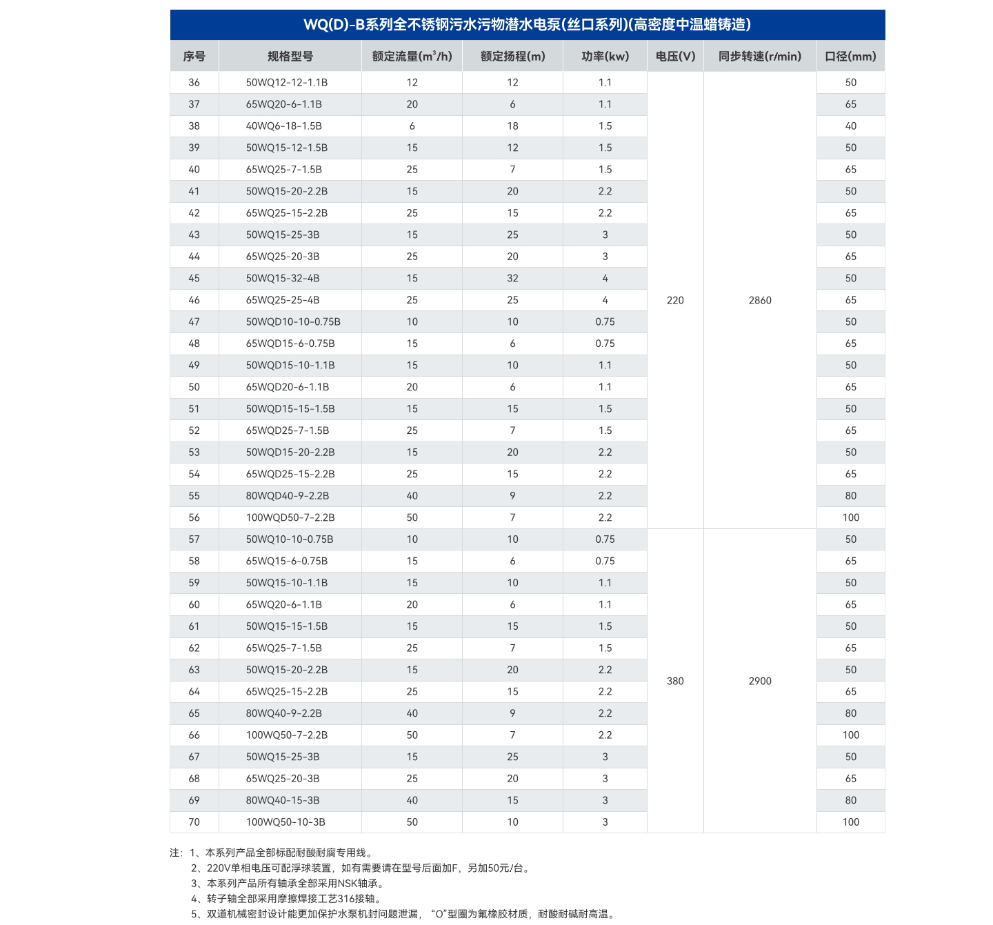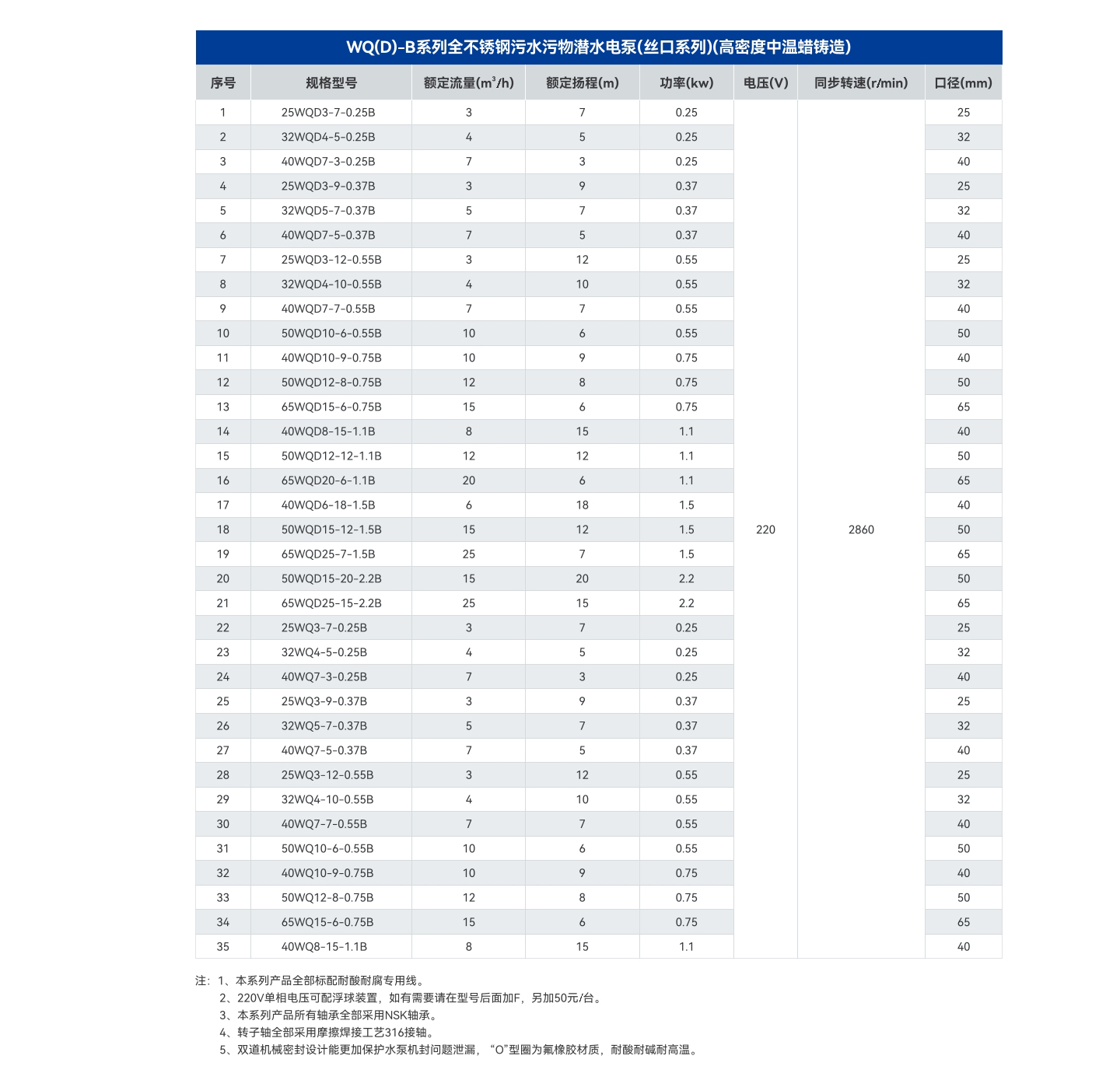 WQ(D)-B/QGWQ/JYWQ全不銹鋼污水污物潛水電泵系列