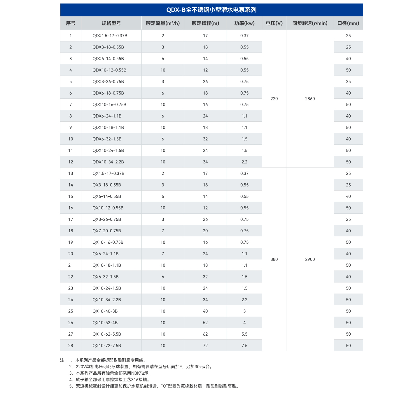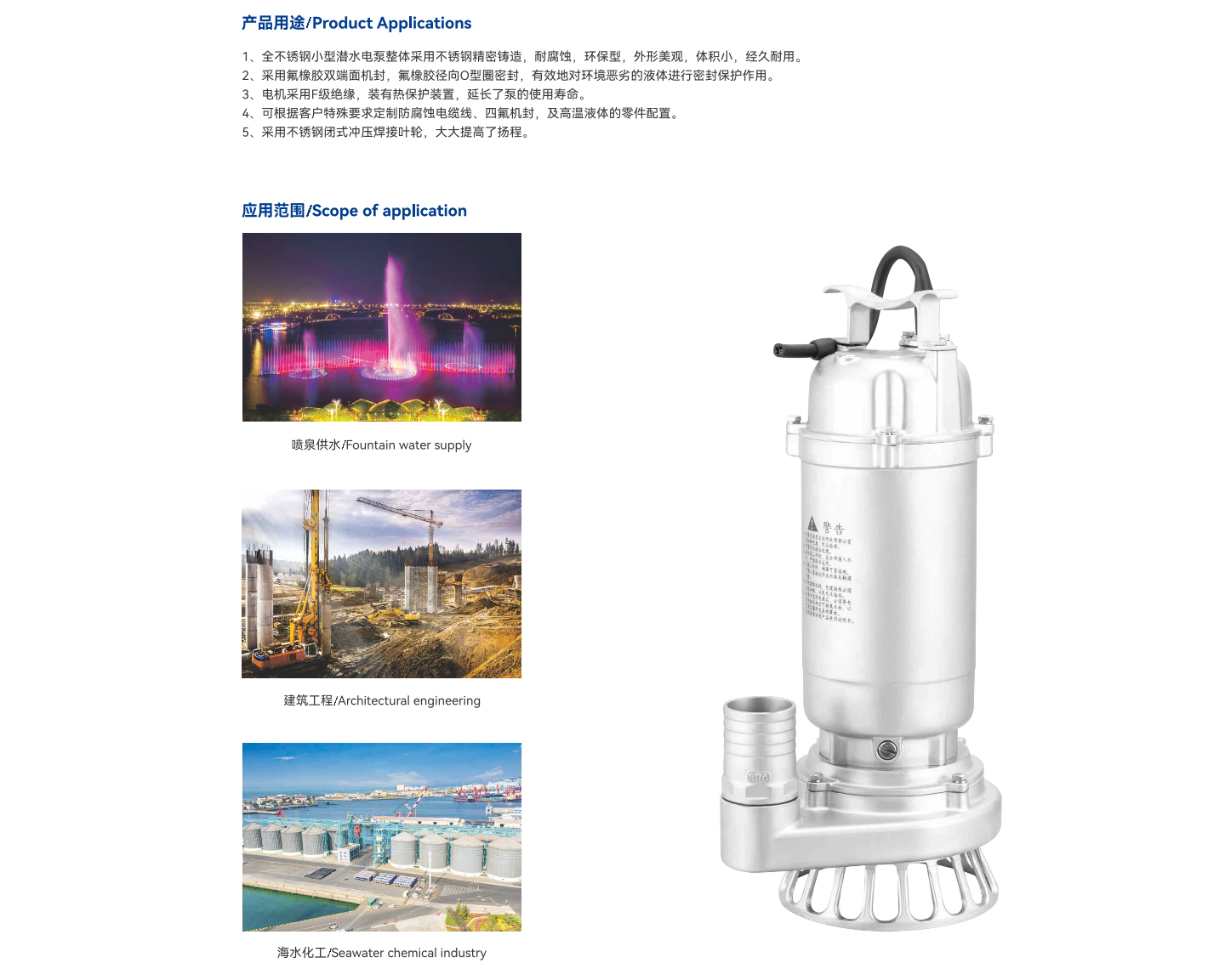 1、全不銹鋼小型潛水電泵整體采用不銹鋼精密鑄造,耐腐蝕,環(huán)保型,外形美觀,體積小,經(jīng)久耐用。2、采用氟橡膠雙端面機(jī)封,氟橡膠徑向O型圈密封,有效地對(duì)環(huán)境惡劣的液體進(jìn)行密封保護(hù)作用。